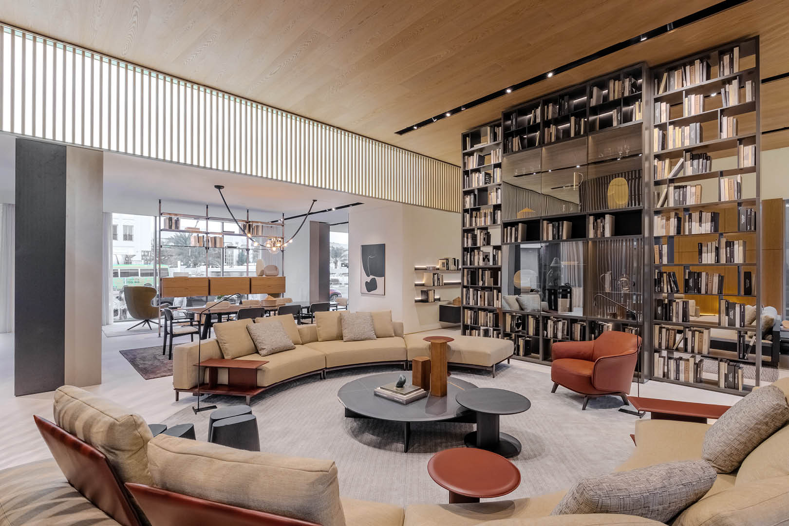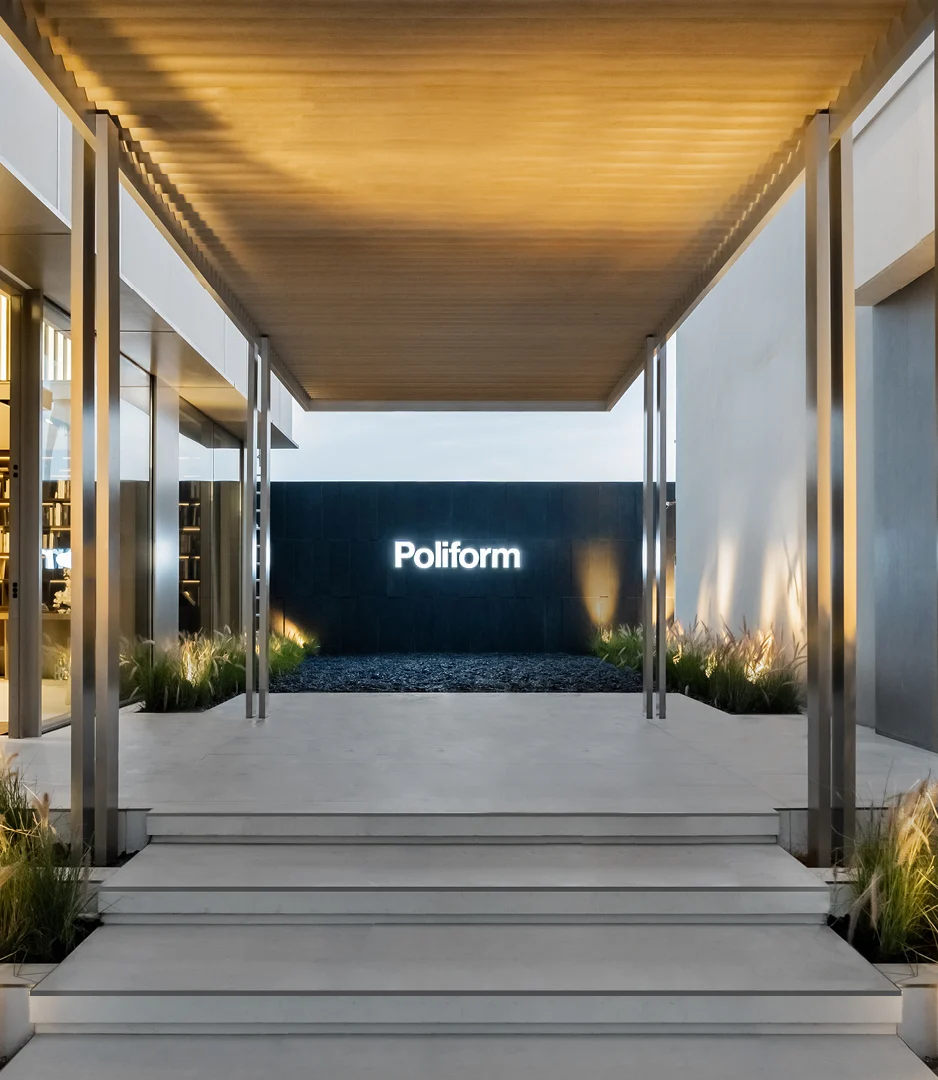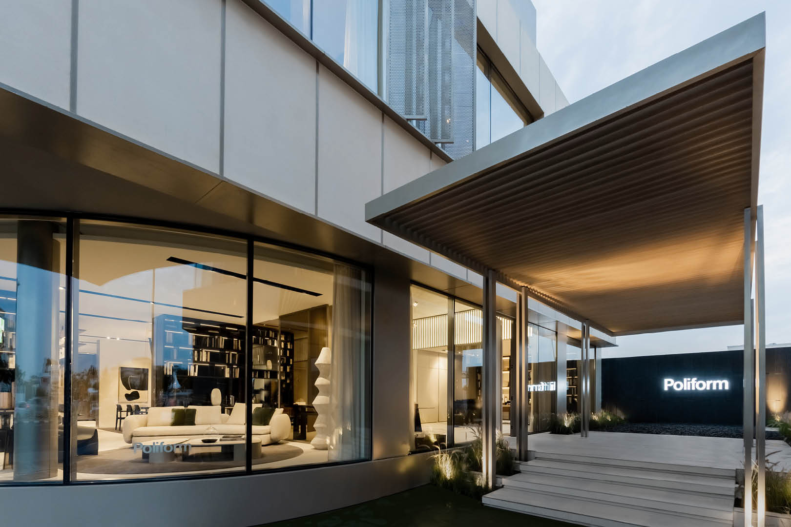 – G+1 Commercial Building – Open plan design to house all types of furniture with seamless boundaries. – Unique Façade featuring GRC Curved panels large glass areas with bronze accents for ultimate luxury.