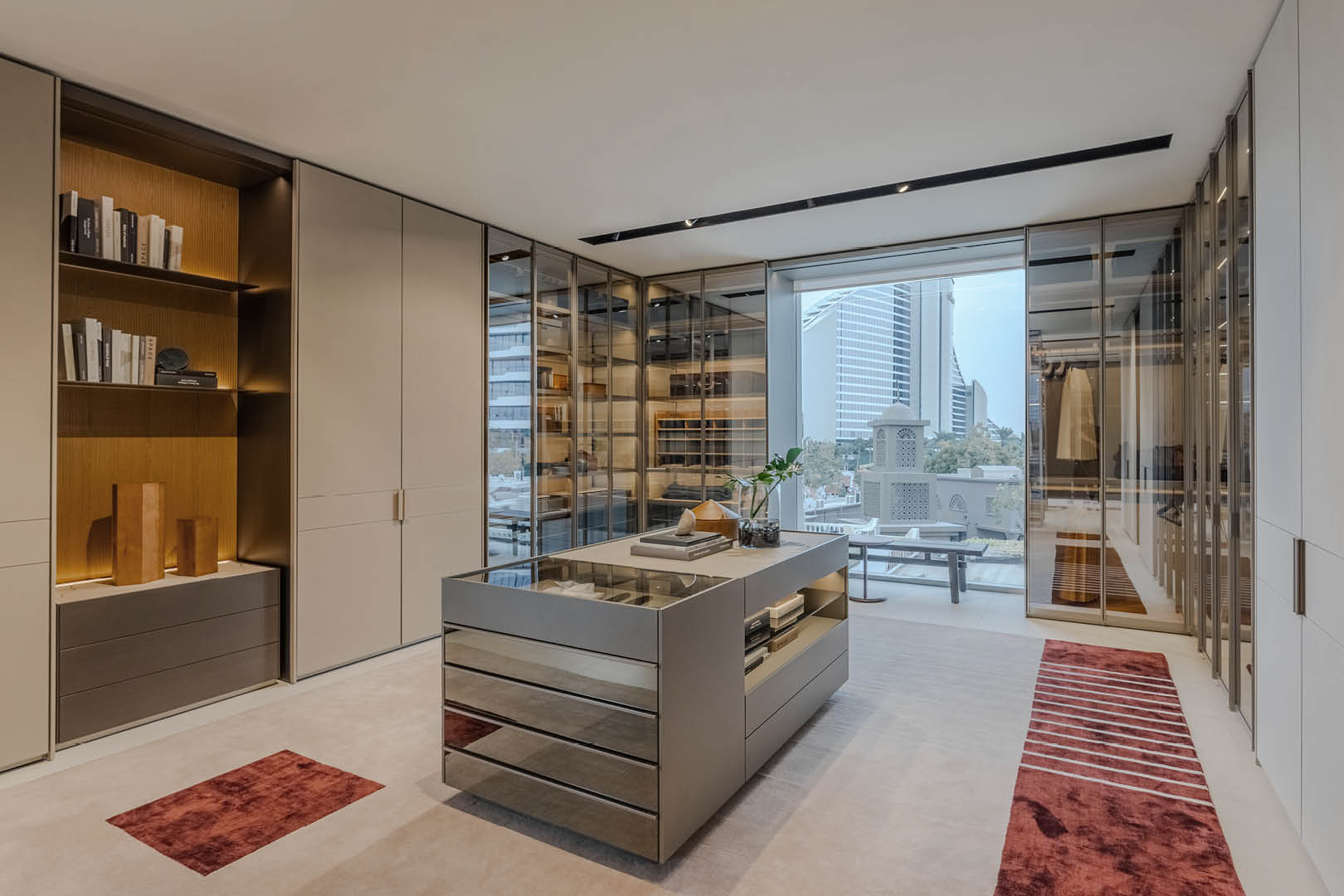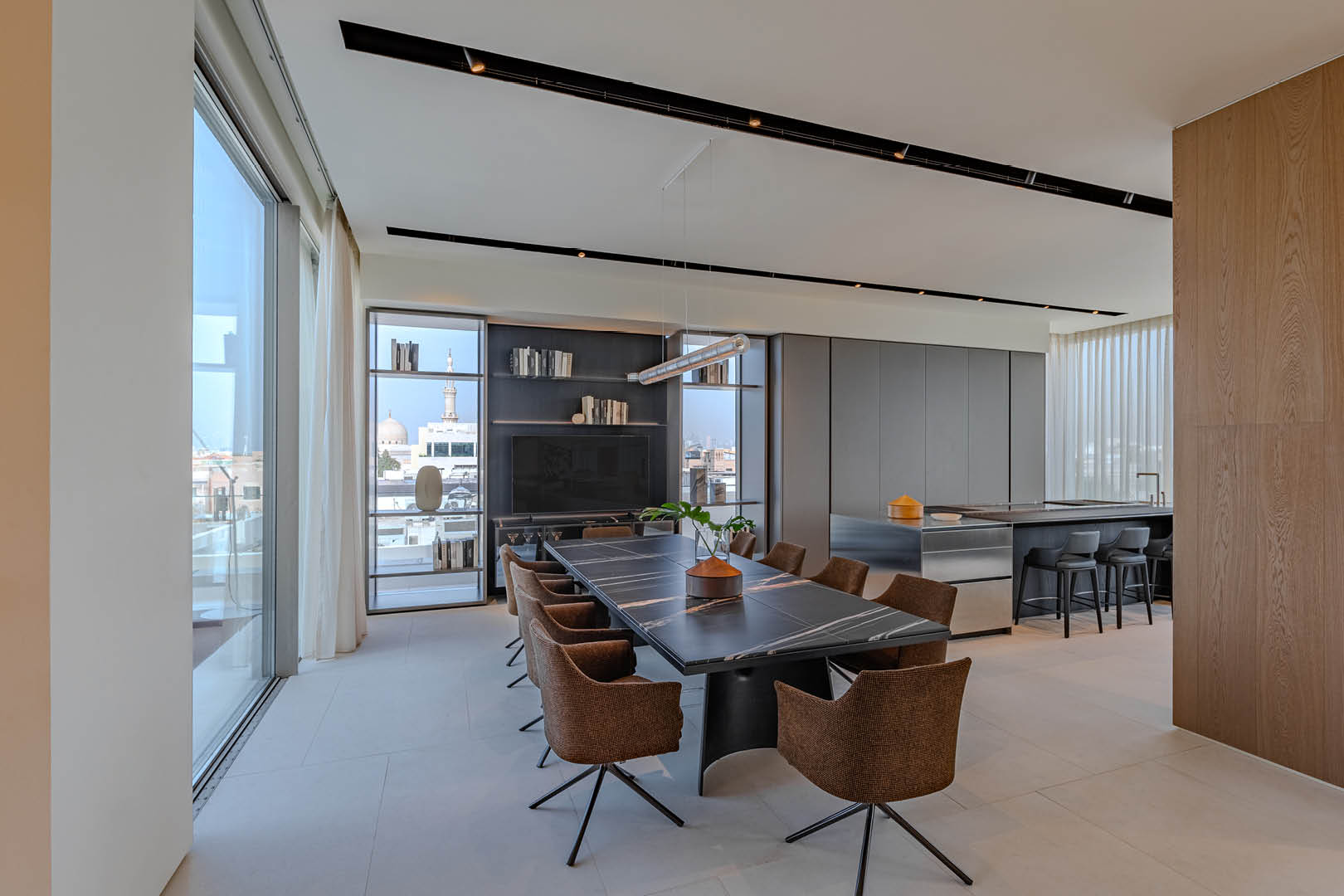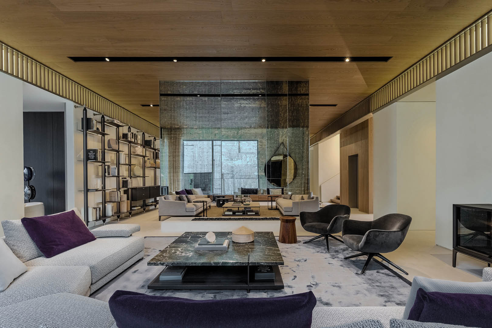 – G+1 Commercial Building – Open plan design to house all types of furniture with seamless boundaries. – Unique Façade featuring GRC Curved panels large glass areas with bronze accents for ultimate luxury.